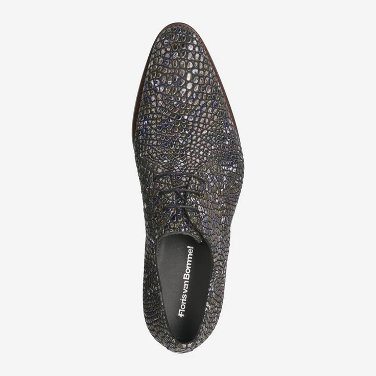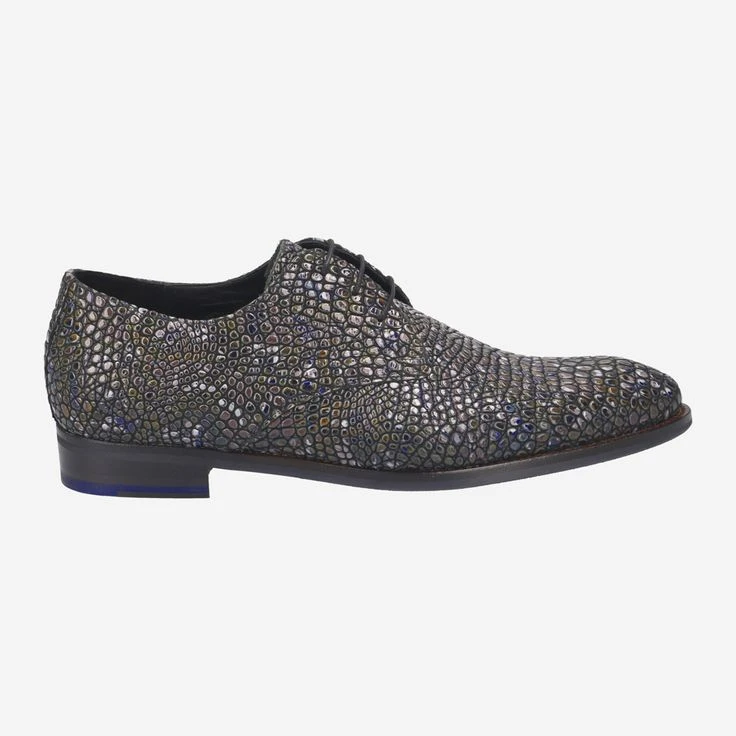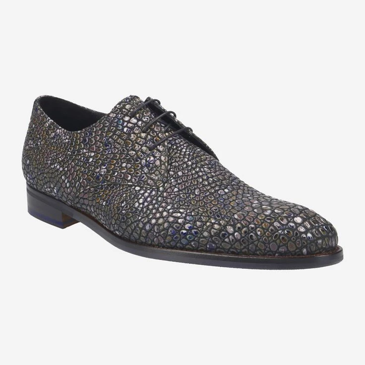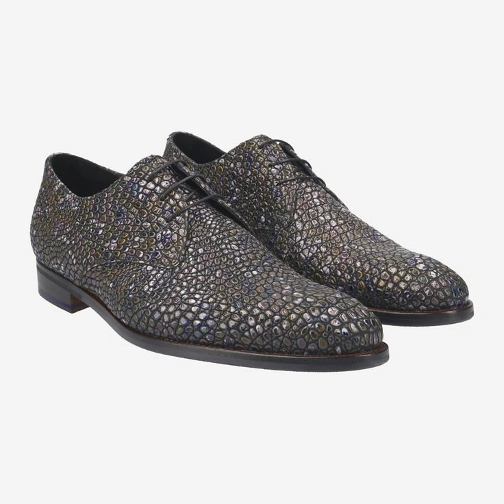 - Stitched-through sole, Derby lacing, 3D reptile embossing/mosaic/stone look, Statement look, Signature piece, Breathable, Comic embossing in outsole.
