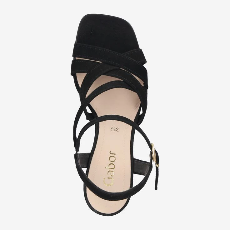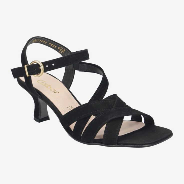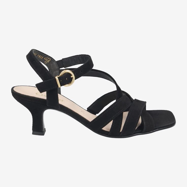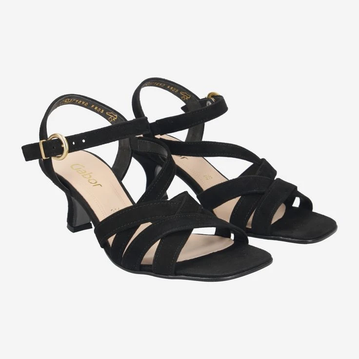 Celebrate life! And since you should celebrate celebrations as they fall, this black sandal from Gabor comes just right! You will enjoy a feminine design with narrow leather straps and a cute queenie heel. The soft suede nestles ideally against your foot and creates a beautiful contrast. We fashionistas know: Our eye loves contrasts!