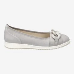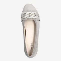 Enjoy summer lightness and a touch of extravagance! This light gray ballerina by Gabor underlines your look with esprit and charisma! The loafer application forms an exciting arc to the business style, and the white sole rounds off the design sporty-fresh. This makes your city stroll really fun!