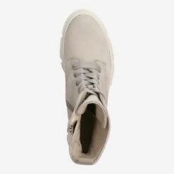 - Warm lining, exchangeable footbed, suitable for insoles, zipper, block heel, wedge heel, platform heel, entry loop, decorative stitching, laces in trendy knit look