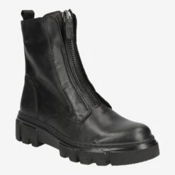 - Exchangeable footbed, suitable for insoles, block heel, warm lining, decorative stitching, front zipper, entry loop, leather application, wedge heel