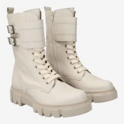 - Warm lining, exchangeable footbed, suitable for insoles, platform heel, entry loop, decorative stitching, decorative metal closure