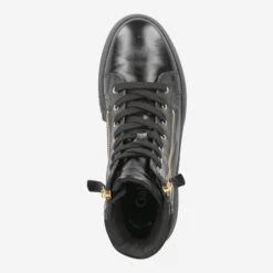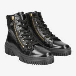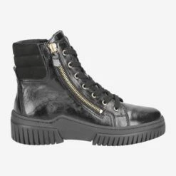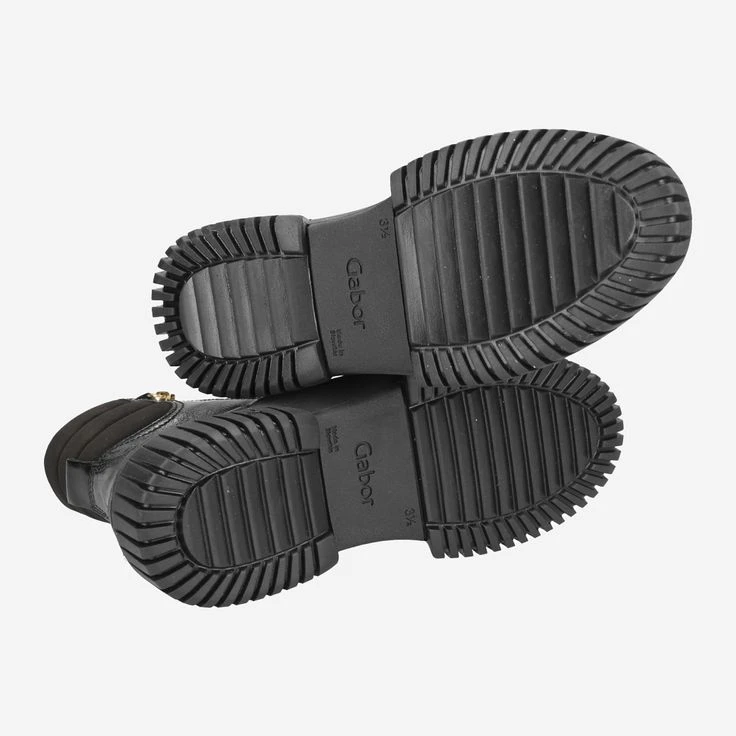 This futuristic, rocking boot reminds in design of the popular biker boot! The innovative platform sole inspires design lovers by artistic claim. And who thinks fashion is not comfortable – who is mistaken here with pleasure! The entrance succeeds very easily over the zipper! The black leather fits your foot perfectly and the insole is removable. Gabor knows what matters – down to the last detail.