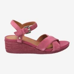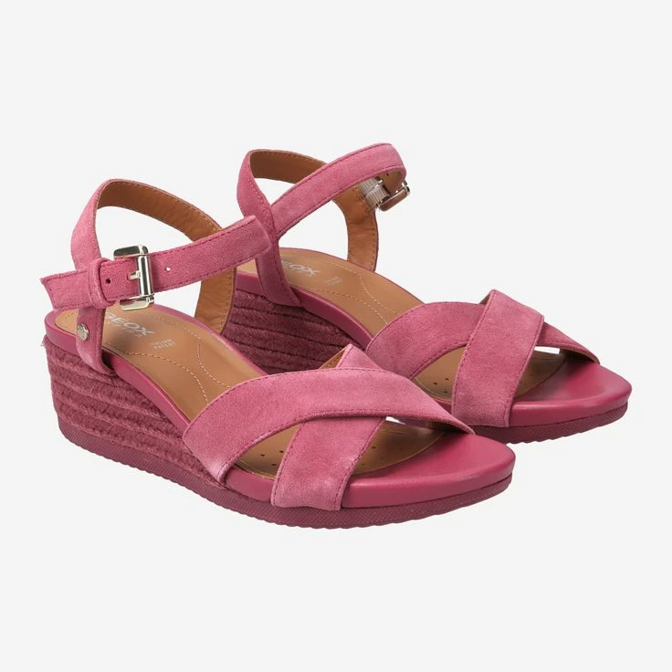- Metal closure, raffia look wedge heel, logo application, entry loop, breathable