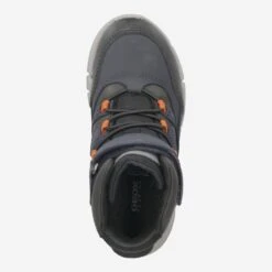With these blue boots “Flexyper” from Geox your child is ready for new adventures! The model is very easy to clean, durable and long-lasting due to the synthetic material. Orange accents make the shoe easily visible even at dusk, and give the shoe a dynamic look. Geox replaceable insole allows you to insert custom insoles for your child.