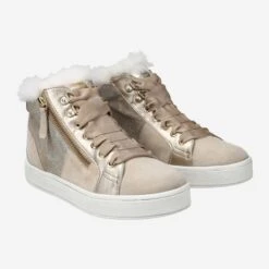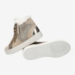 - Warm lining, exchangeable footbed, suitable for insoles, logo application, rivet applications, decorative stitching, coarse brocade fabric on the side (noble structure, with glitter effect), lacing from wide ribbed tape, additional pair of laces, breathable