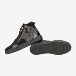 - Warm lining, exchangeable footbed, suitable for insoles, logo application, rivet applications, decorative stitching, coarse brocade fabric on the side (noble structure, with glitter effect), lacing from wide ribbed tape, additional pair of laces, breathable