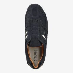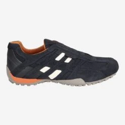 Whether for excursions in your free time or simply for everyday life: These loafers from GEOX do everything with you. They convince not only with a sporty design, but also with a high level of wearing comfort. Thus, the upper is made of blue suede and textile, while the insole and lining are made of a leather-textile mix. All around best protection for your feet! Stability is also promised by the sole made of non-slip rubber. Contrast stitching and orange and white decorative elements on the leather round off the design skillfully