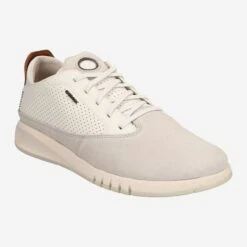 The revolutionary men’s sneaker with its eye-catching modern design is characterized by the upper made of soft suede and heel with perforations on the side. Thanks to innovative style, the model seems perfect for the office as well as leisure. The elastic laces and exquisite shape provide a good foot fit and promotes a correct gait. The classic Geox rubber sole, based on an exclusive patent, provides an ideal microclimate inside the shoe while offering a durable, breathable and water-repellent exterior.