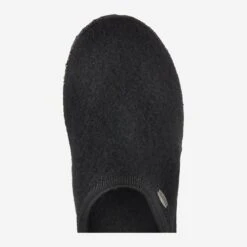 Black slippers from Giesswein. The upper material is made of 100% virgin wool. The inner lining and the cover sole are also made of virgin wool. A non-slip natural rubber sole ensures a good wearing comfort. Washable at 30 degrees, without fabric softener and dryer. Suitable for exchangeable footbed.