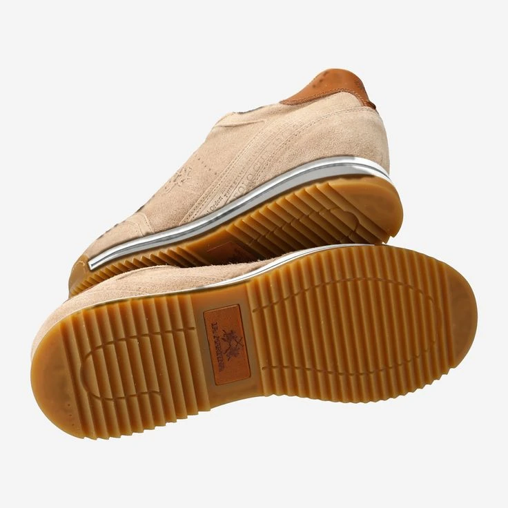- Exchangeable footbed, suitable for insoles, sewn-through sole, breathable, decorative perforations, decorative stitching, contrast stitching, logo applications, logo embossing, vintage look