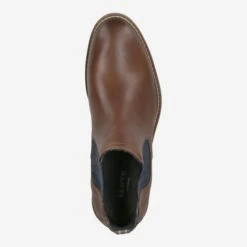 With “Dario” by LLOYD you enjoy dreamlike comfort, outstanding quality and a noble design. The cognac-brown calfskin can be combined in many ways, and cuts a great figure both with a business look and with jeans. The stretch inserts are on the one hand practical and comfortable, and on the other hand they set a skillful, colorful accent in blue. This is repeated in the non-slip rubber sole, and makes this Chelsea boot a real eye-catcher!
