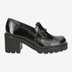 Give your stylish look a racy extra with these high front pumps from Paul Green! Made of black crumpled patent leather in a slight square shape and with a fashionable chain at the instep, these pumps will embellish your party or business look in no time. The striking sole with blocky heel will get you through the day in style and comfort. Definitely a new favorite piece in your shoe closet! Paul Green shoes have a DNA of elegance and sportiness. This DNA is in every single shoe and in the entire range.