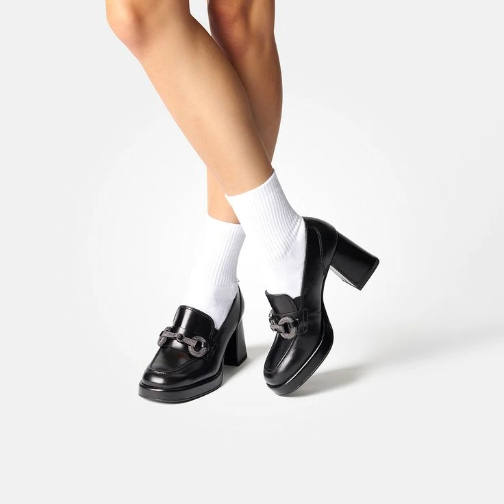 - Block heel, loafer application, horsebit application, stretch inserts, breathable