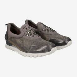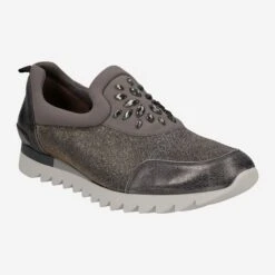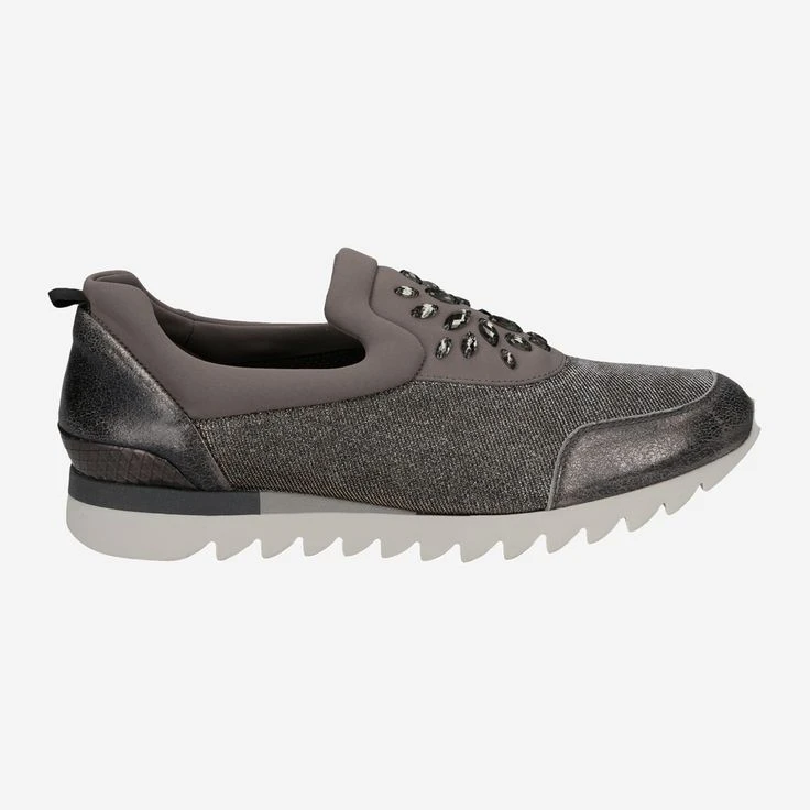In the light iridescent textile give these sneakers from Paul Green a unique and eye-catching look. The noble shoes made of textile and brush leather (Met. Brush) are fully lined with leather on the inside for maximum comfort. A jewelry appliqué adorns the shoes, while the rubber sole promises plenty of stability. The heel height is 15 mm.