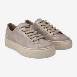 Your new SUPER SOFT fashion favorites for chic casual looks are these platform pumps from Paul Green. Crafted from premium velvet leather in beige metallic, this pair captivates with a minimalist design. These sneakers provide unbeatable comfort with soft leather lining with fluffy terry and extremely soft heel. The wide sole completes the overall look in a sporty way. Give your outfit creations a fashionable finish! Paul Green makes shoes with great passion and mastery, expressed in perfection, quality, style and fit. The result: a unique, uplifting wearing experience! The Paul Green effect.