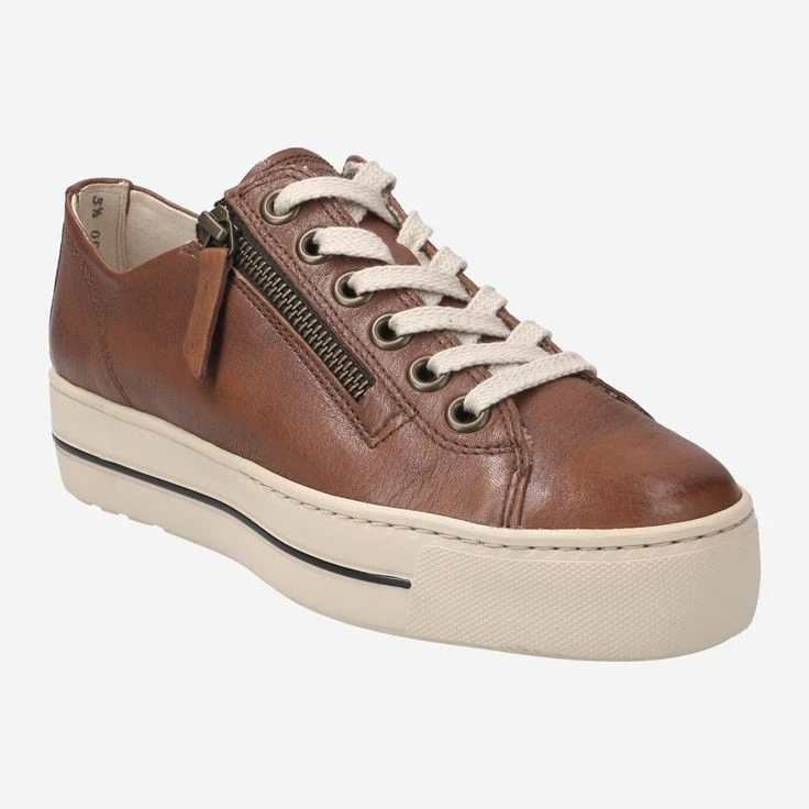 With these SUPER SOFT Pauls from Paul Green you expand your casual wardrobe completely new. The clean look is rounded off by the cuddly, medium brown smooth leather and the super soft leather lining with terry cloth. The gold eyelets with matching zipper on the side add fashionable flair. The light platform outsole lets you stride through the day buoyantly while cutting a great figure. Create casual street style looks with this pair! Paul Green makes shoes with great passion and mastery, expressed in perfection, quality, style and fit. The result: a unique, uplifting feel! The Paul Green effect.
