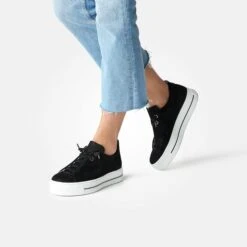 These SUPER SOFT Pauls from Paul Green are perfect for hip everyday styles. The model impresses with black suede. The elastic laces ensure a relaxed feel. Thanks to the super soft finish, the pair provides extra comfort. The wide outsole convinces with a trendy look. A perfect duo for leisure or the office! Paul Green makes shoes with great passion and mastery, which is expressed in perfection, quality, style and fit. The result: a unique, uplifting wearing experience! The Paul Green effect.