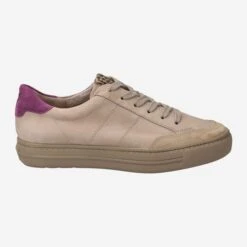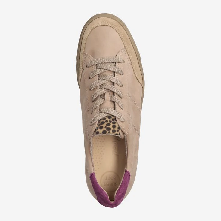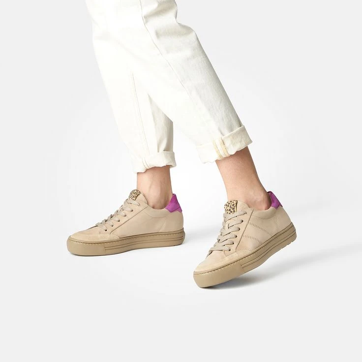 These SUPER SOFT Pauls from Paul Green are a casual basic that is indispensable for the everyday trend. The classic model in clean design features soft nubuck leather in beige and fuchsia details. Pleasant comfort is provided by the super soft leather lining with terry cloth. The flexible outsole convinces with first-class wearing properties. This sneaker will accompany you stylish and relaxed to all leisure and business activities! Paul Green makes shoes with great passion and mastery, which is expressed in perfection, quality, style and fit. The result: a unique, uplifting wearing experience! The Paul Green effect.