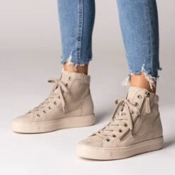 With this high sneaker from Paul Green you will enjoy the ultimate casual shoe that casually rounds off your look in street style! The perforated texture of the beige smooth leather creates a wonderfully plastic effect, which is rounded off in style by the white sole. Whether with a sweat dress, jeans or chinos – you are guaranteed a casual look!