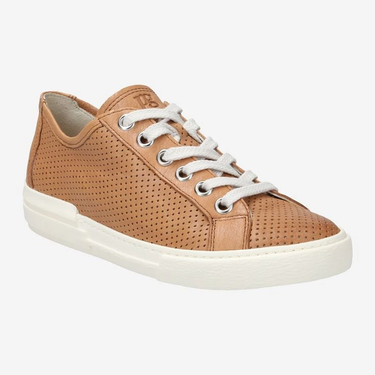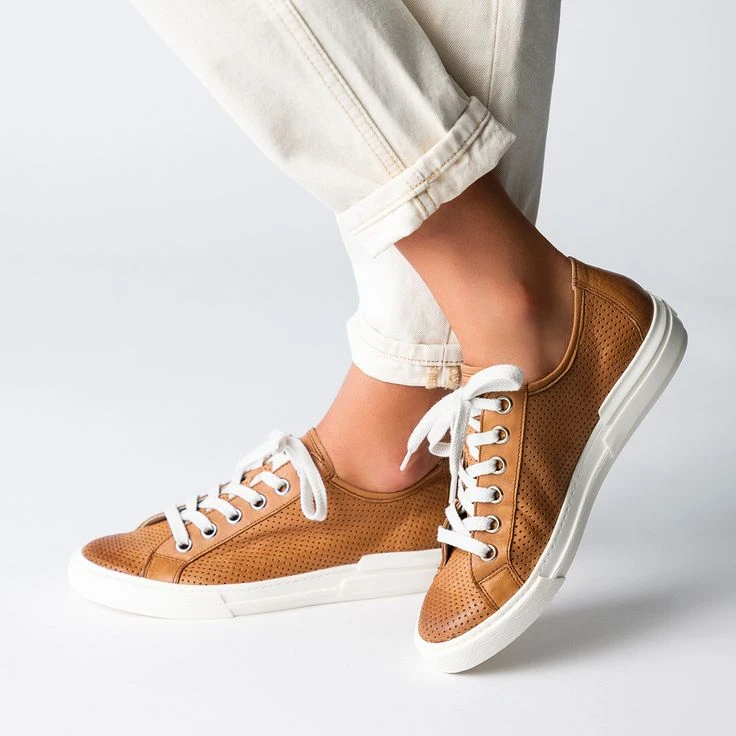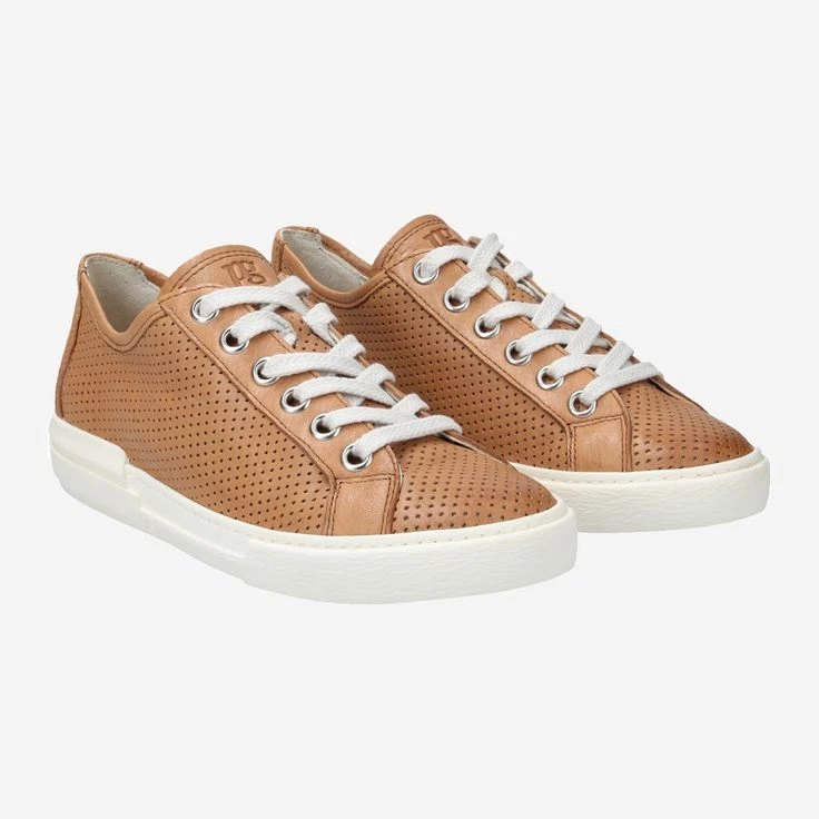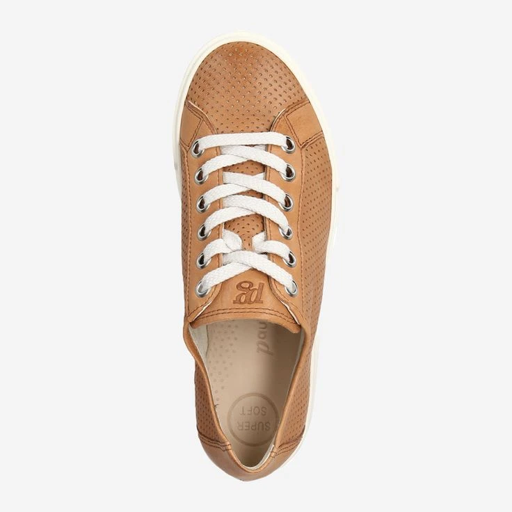 Combine your casual street look with this cognac brown sneaker from Paul Green! The production takes place 100% in Europe, and grants you the good feeling of optimized processes and unique, precise manufacturing. You will enjoy selected smooth leather, which is given an airy charm by fine perforations. SuperSoft technology gives you cushioning and comfort.