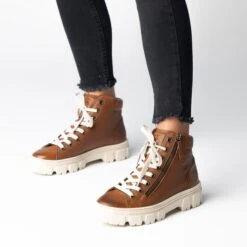 These SUPER SOFT hightop sneakers from Paul Green are unrestrictedly comfortable and thus perfect for leisure. The cuddly pair made of soft smooth leather in medium brown provides a great look with the side zipper. Thanks to the super soft finish and the inner lining of leather with terry cloth, this model offers an excellent walking feeling.
