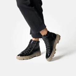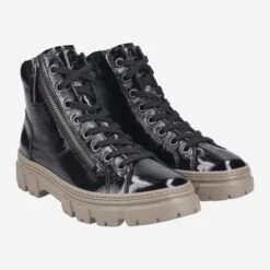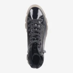 These SUPER SOFT hightop sneakers from Paul Green are unrestrictedly comfortable, making them perfect for casual wear. Made of soft crumpled patent leather in black, the cuddly pair provides a great look with the side zipper. Thanks to the super soft finish and leather lining with TENCEL™ fibers, this model offers an excellent walking experience. The matching progressive outsole rounds off the style in a trendy way and convinces with a safe and relaxed appearance. Complete your outfit with this great pair!