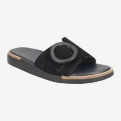 With these SUPER SOFT mules from Paul Green, the new summer chic can be quite uncomplicated. Clean in look, the model features a wide strap made of black velvet leather, which ensures a perfect fit thanks to an adjustable buckle. The pleasant leather footbed provides even more comfort and a fantastic walking sensation. The pair looks especially pretty with breezy summer looks! Paul Green makes shoes with great passion and mastery, which is expressed in perfection, quality, style and fit. The result: a unique, uplifting wearing experience! The Paul Green effect.