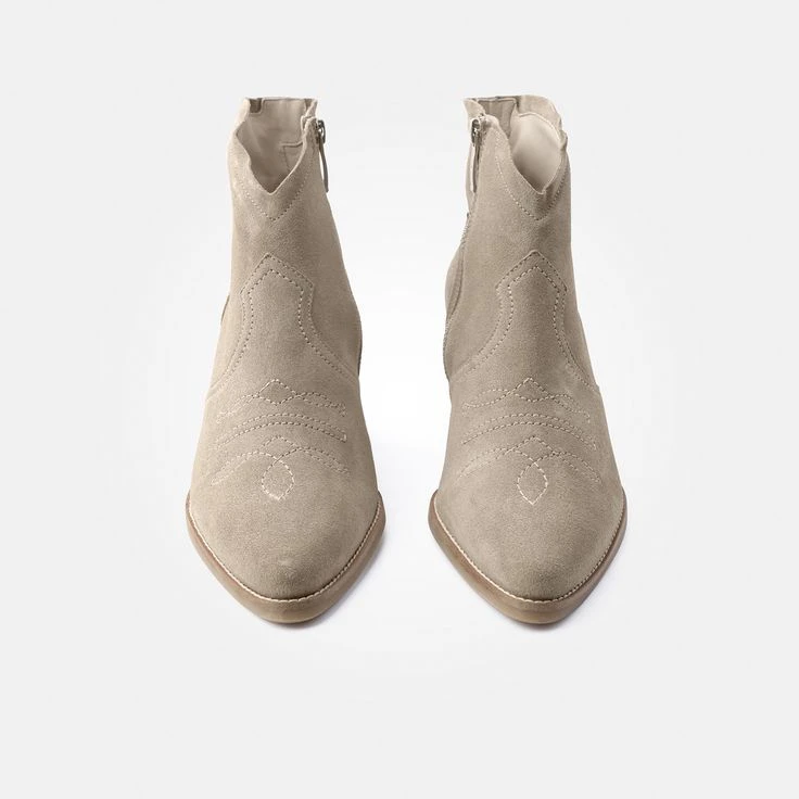 - Block heel, zipper, logo embossing, decorative stitching, contrast stitching, country style, western boots, breathable