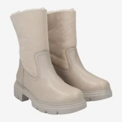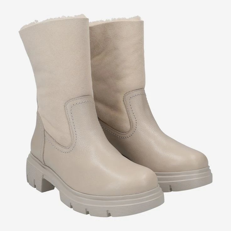 With these booties with warm lining from Paul Green you are well equipped for all winter weather conditions. The model made of beige smooth leather completes the design with the soft shaft made of doubleface and ensures a convenient entry and exit with the zipper at the back. Inside the shoe, the feet are equipped with cozy Merino warm lining (mulesing-free). The somewhat coarse outsole offers a first-class wearing pleasure. So must be the favorite ankle boot, which you can wear with pleasure and combine versatile!