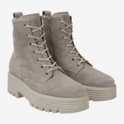 These lace-up booties from Paul Green make their gritty look real fashion highlights. The pair inspires with gray suede and soft leather lining with cozy terry. The distinctive and slightly thicker tread bottom adds zest to the style. A lace-up ankle boot that will add that casual touch to your outfit! Paul Green makes shoes with great passion and mastery, expressed in perfection, quality, style and fit. The result: a unique, uplifting feel! The Paul Green effect.