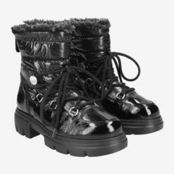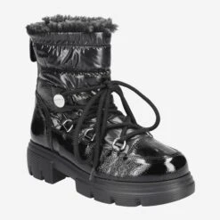 These booties with lambskin lining from Paul Green are a new look that makes a splash. The black crumpled leather in combination with the shiny, textile material make the boots real fashion highlights and are a garnet for trendy appearances. The sporty laces round off the style with fashionable nuance. The cuddly lambskin inside convinces with warm comfort. When things need to move quickly, a zipper in the heel area ensures easy entry and exit. The pithy tread bottom offers safe and comfortable tread. Experience these fashionable booties with style factor!