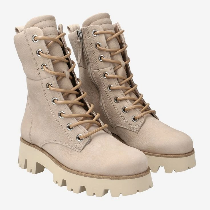 These progressive lace-up booties from Paul Green bring variety to any wardrobe. The soft nubuck leather in beige presents itself trendy in a clean look. The inner lining made of leather with TENCEL™ fibers is soothingly soft and provides pleasant wearing comfort. The casual laces make the model variable in width and adapt to any foot shape. For those who need to go fast, this pair has a zipper on the inside. The hip outsole convinces with excellent walking feeling. Make a confident statement with these lace-up ankle boots! Paul Green makes shoes with great passion and mastery, expressed in perfection, quality, style and fit. The result: a unique, uplifting wearing experience! The Paul Green effect.