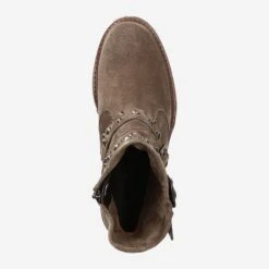 These wonderful biker boots made of brown suede from Paul Green inspire not only by the two metal buckles, but also by the stud applications that decorate the front of the shoe. The warm, autumnal hue invites you to take an extended walk in the woods and the pronounced tread sole gives the shoe a secure grip even in wet weather. The zipper makes it easy to put on and take off.