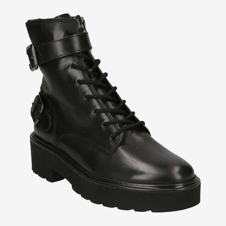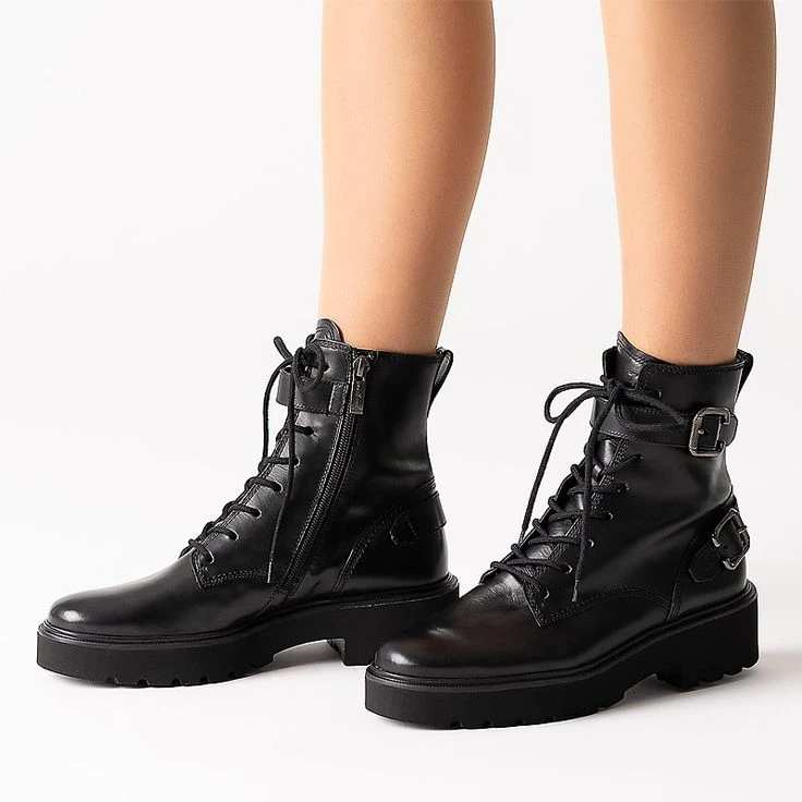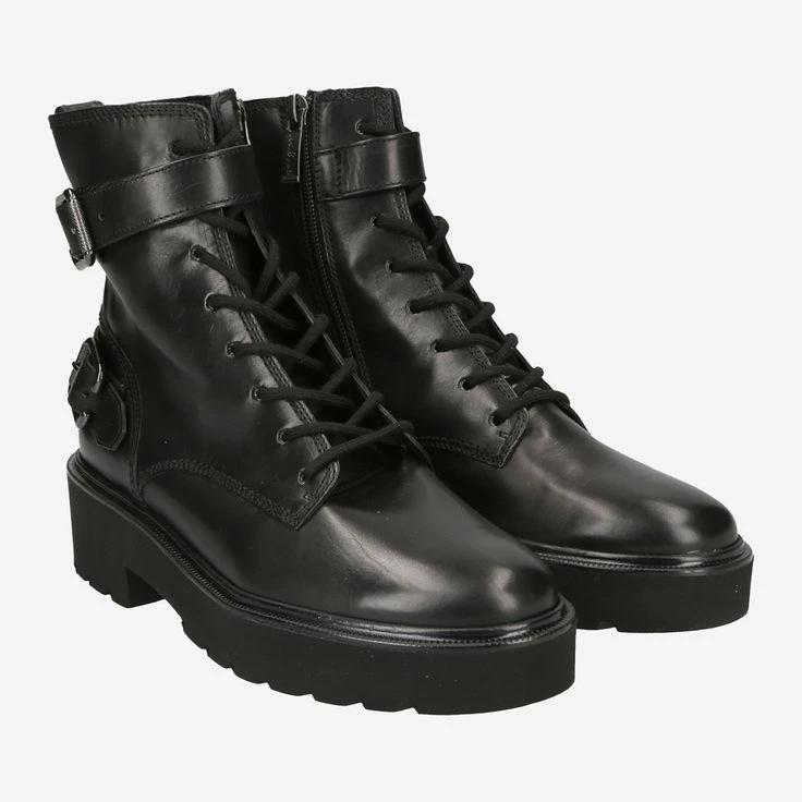These Paul Green Boots delight every biker heart! This model impresses with decorative buckles in deep dark black. In addition to the lacing, the boot has side zippers so you can set off in no time. The platform perfectly complements the look and makes it look dynamic. “These Boots are made for walking!” – Let`s go!