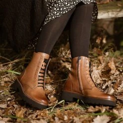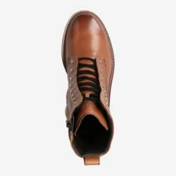 Dance with these noble boots from the row! Because the refined lacing absolutely catches the eye. It runs on the inside! The shiny, gold-colored metal rivets on the outer lacing strip are an absolute eye-catcher! Paul Green has here wonderfully reinterpreted the classic lace-up ankle boot made of supple, cognac brown calfskin. The non-slip platform sole is nicely accented by bright contrast stitching. The zipper makes it easy to put on, so you can immediately take out your new dream boots!