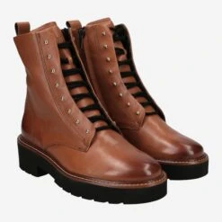 Dance with these noble boots from the row! Because the refined lacing absolutely catches the eye. It runs on the inside! The shiny, gold-colored metal rivets on the outer lacing strip are an absolute eye-catcher! Paul Green has here wonderfully reinterpreted the classic lace-up ankle boot made of supple, cognac brown calfskin. The non-slip platform sole is nicely accented by bright contrast stitching. The zipper makes it easy to put on, so you can immediately take out your new dream boots!
