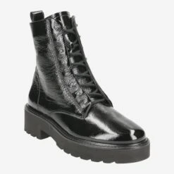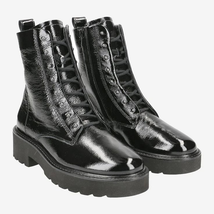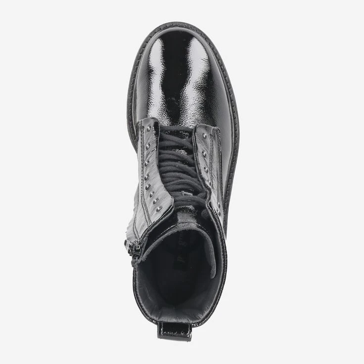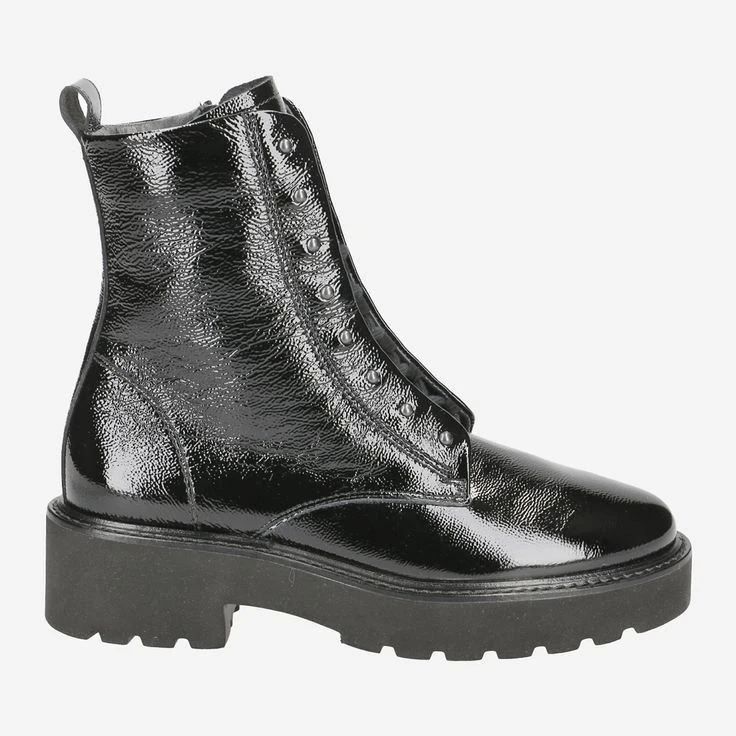 Fashion is fun! And with this exciting boots from Paul Green succeeds your fashion update in an instant! The sophisticated lacing absolutely catches the eye. It runs on the inside! The matte metal rivets on the outer lacing strip complement the black leather in crumpled lacquer look perfectly! Paul Green has wonderfully reinterpreted the classic lace-up ankle boot here. The zipper makes it easy to put on, so you can immediately carry out your new cream pieces!