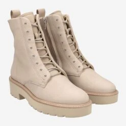 These boots from Paul Green you will love! The beige nubuck leather fits perfectly to the foot due to its natural grain. The refined lacing is the highlight of this model. Silver-colored metal rivets on the outer lacing strip refine the inside lacing. The non-slip platform sole is nicely accented with bright contrast stitching. The zipper makes it easy to put on, so you can immediately take out your new dream boots!