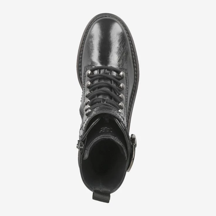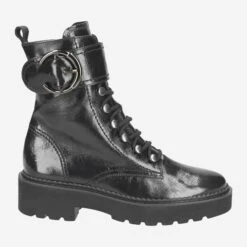 - Zipper closure, decorative closure with metal buckle, eyelet applications, logo embossing, entry loop, block heel, sole height at front: 25 mm, flexible, adaptable crumpled varnish