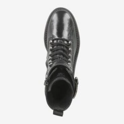 This statement boot by Paul Green is the new must-have in terms of fashion! The black brush leather makes this model your ultimate joker in your shoe closet! The innovative lacing, as well as the adjustable strap with metal buckle, give you the perfect fit on your foot. After that, you can easily open it via the zipper. The inner lining made of leather and airy terry cloth gives you a permanently comfortable wearing feeling. Combine with it rocky looks, exciting style mix with airy dresses, and great combos with knitwear! So fashion is really fun!