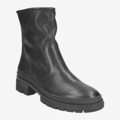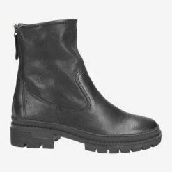 This ankle boot from Paul Green inspires with black, fine-grained leather that adapts to your foot quite individually. This new model is complemented by a raised rubber strip, which optimally protects against splashing wetness. The wide block heel, as well as the clever zipper at the heel, round off your new look sophisticated!
