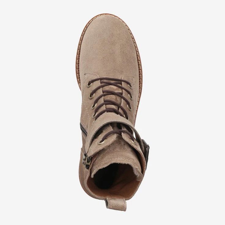 This ankle boot from Paul Green is a lucky find in terms of versatility and style! You can combine dreamlike looks with it, because these boots look brilliant with dresses as well as with casual style! The beige suede is complemented by a bright contrast stripe along the placket. A convenient zipper serves your comfort when getting into the boot. A casual look is achieved by the leather buckle, which you can easily fix via a concealed Velcro closure. So simple a cool casual look works!