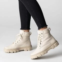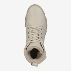 Your new all-rounder for the cold days is here! This ankle boot is made of beige calfskin, and complemented by a cozy warm lining made of easy-care synthetic (100% polyester). The popular look of the classic worker boot is also absolutely on trend this year, and rounds off your outfits in a young, dynamic and stylish way. Comfort is provided by the specially designed heel cap made of soft leather, as well as the extra-light rubber sole. Versatility is absolutely trumps in this case!