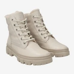 Your new all-rounder for the cold days is here! This ankle boot is made of beige calfskin, and complemented by a cozy warm lining made of easy-care synthetic (100% polyester). The popular look of the classic worker boot is also absolutely on trend this year, and rounds off your outfits in a young, dynamic and stylish way. Comfort is provided by the specially designed heel cap made of soft leather, as well as the extra-light rubber sole. Versatility is absolutely trumps in this case!