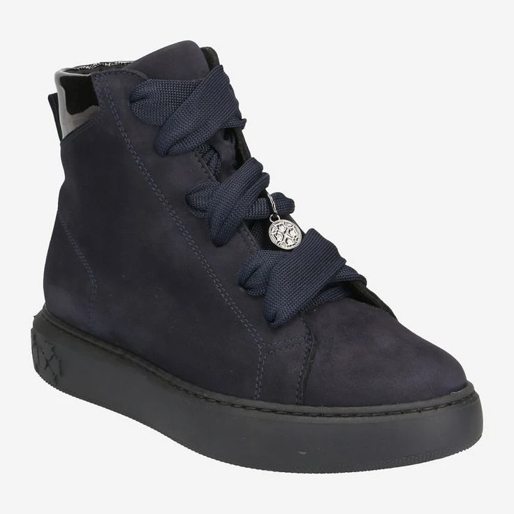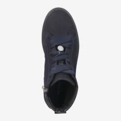 Peter Kaiser shows with this innovative, dark blue ankle boot “Bena” an expanded field in terms of design! The manufacturer reaches here from the otherwise so clear, reduced line to a playful fashion update! The casual style of the high sneaker peps up the look young and fresh. The jewelry pendant with logo embossing is a great eye-catcher, which complements the lacing noble!