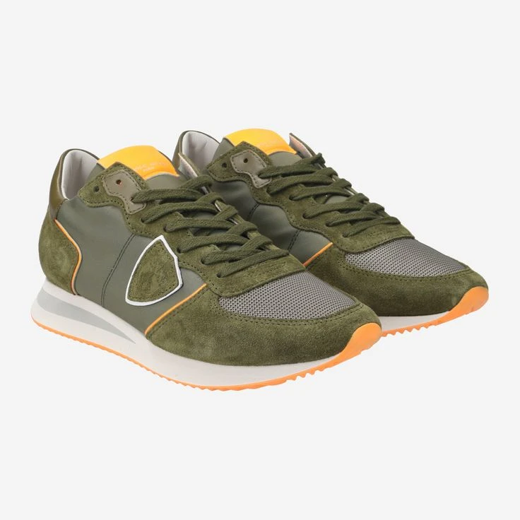 Fancy a fashion update in a class of its own? Then PHILIPPE MODEL is the label for you! Through Parisian design and Italian handmade, this model sets new standards. The brand new TRPX LOW sneaker is a real statement piece. Held in olive green hue, it immediately catches the eye. The bright orange details serve as highlights and ensure hip street style!