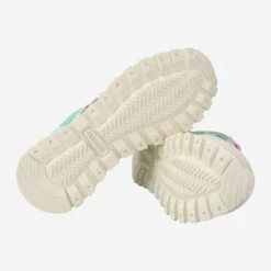 - semi-transparent textile, removable footbed, suitable for insoles, logo application, logo embossing, decorative stitching, nylon made from econyl yarn, which is made from the remains of fishing nets and carpets, 50% recycled sole