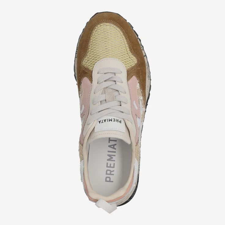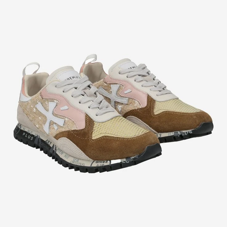 With “Runsead Var. 5451” from Premiata you enjoy the luxury of Italian design art. The Italian handmade gives you dreamlike comfort, a very special design and enchanting details. The material mix of smooth leather, brown suede and textile areas is refined by noble logo applications, sequins, embossing and decorative stitching. The printed sole also rounds off this cream piece typical of the brand.