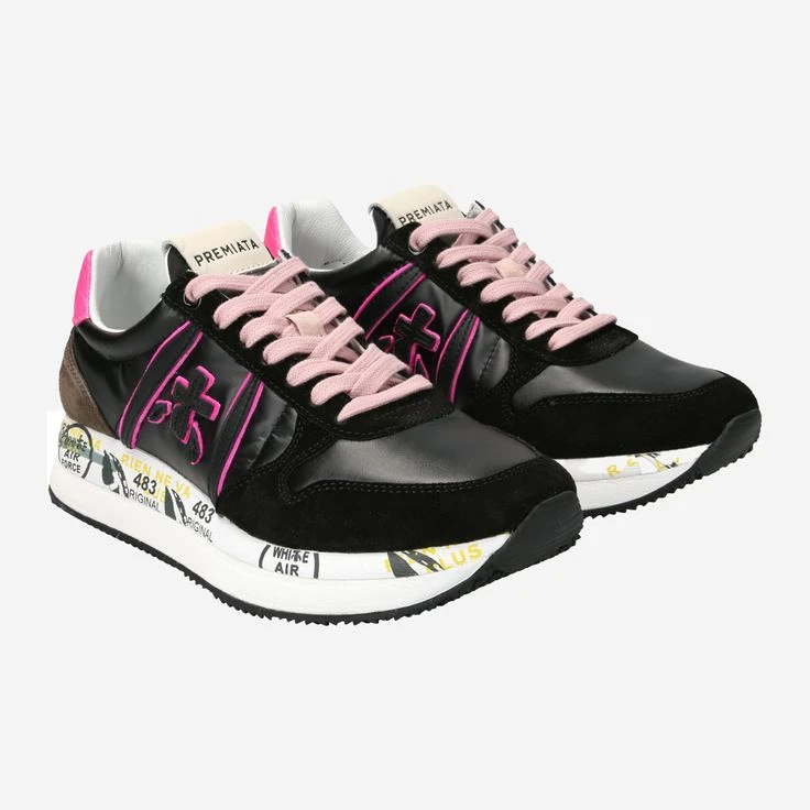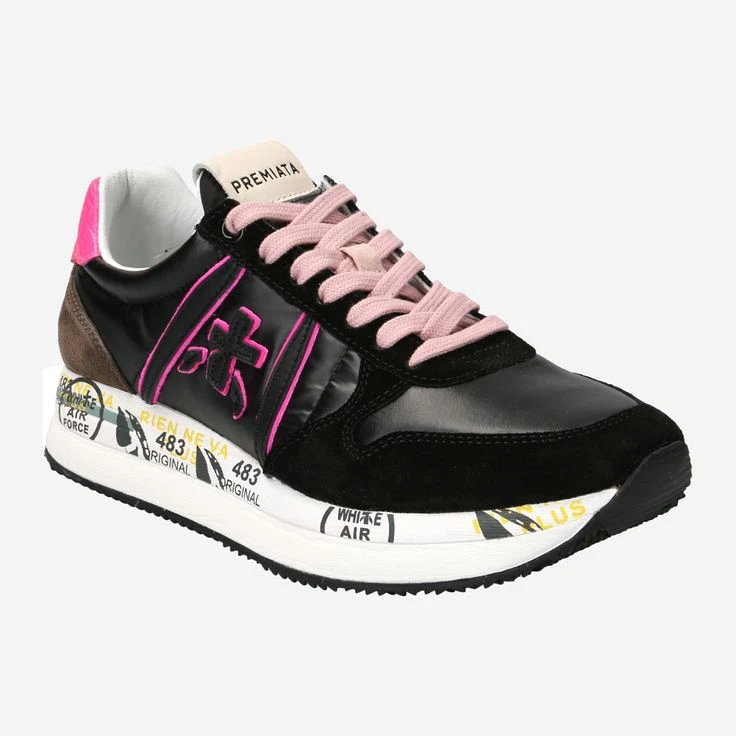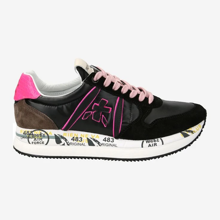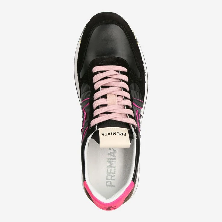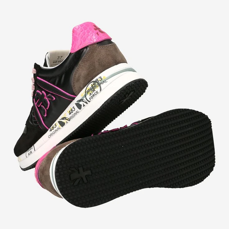 - Exchangeable footbed, suitable for insoles, platform sole, wedge heel, logo embossing, logo application, reptile-look heel cap, breathable